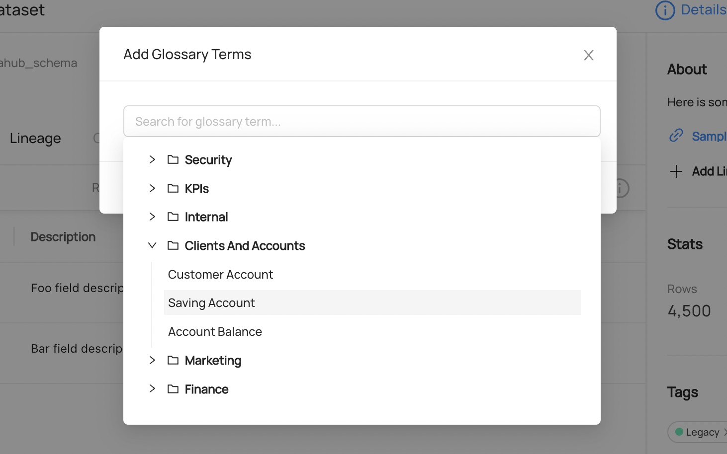 This will open a modal where you can navigate through your Glossary to find your desired Term Group.