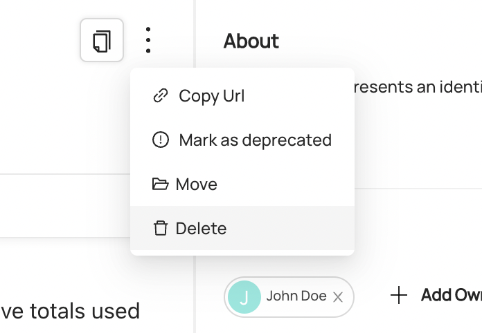 In order to delete a Term or Term Group, you need to go to the entity page of what you want to delete then click the menu dots on the top right. From here you can select Delete followed by confirming through a separate modal. Note: at the moment we only support deleting Term Groups that do not have any children. Until cascade deleting is supported, you will have to delete all children first, then delete the Term Group.